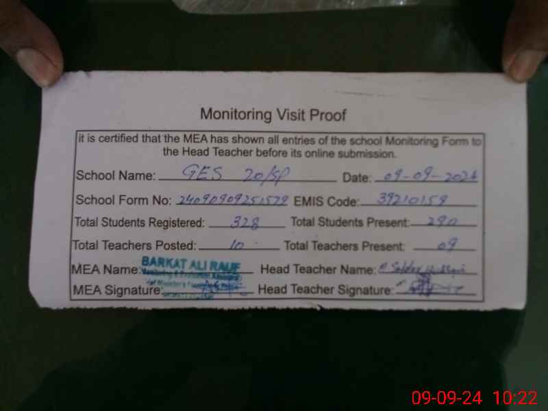 | EMIS Code: 39210159 | Name of School: GES 20/SP PAKPATTAN | |||