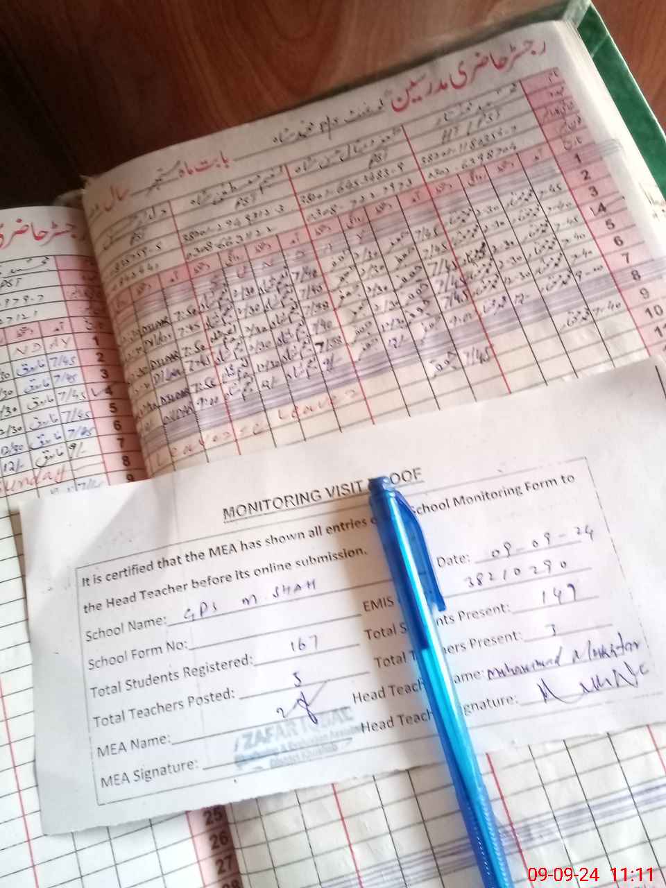 | Attendance Register | Head Teacher | MEA with School | Visit Proof |