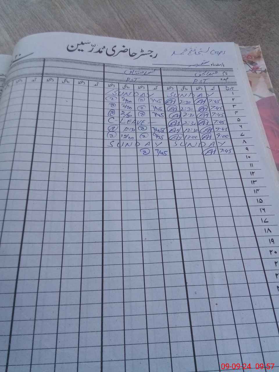 | CNIC | Full Name | Designation | R/C | Absence During Last Calender Month |