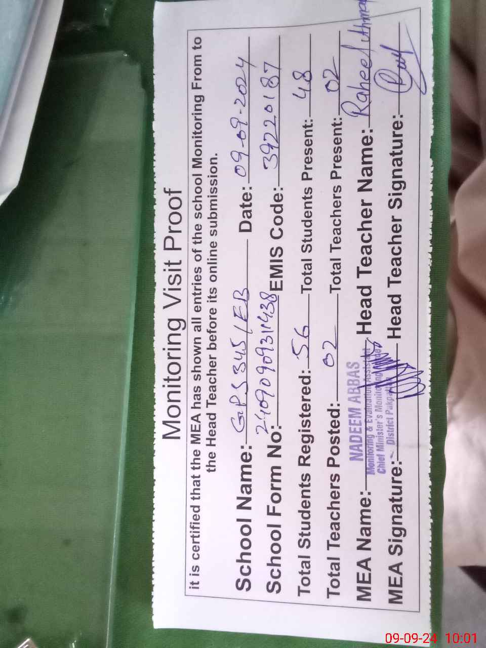 | EMIS Code: 39220187 | Name of School: GPS 345 EB ARIFWALA | |||