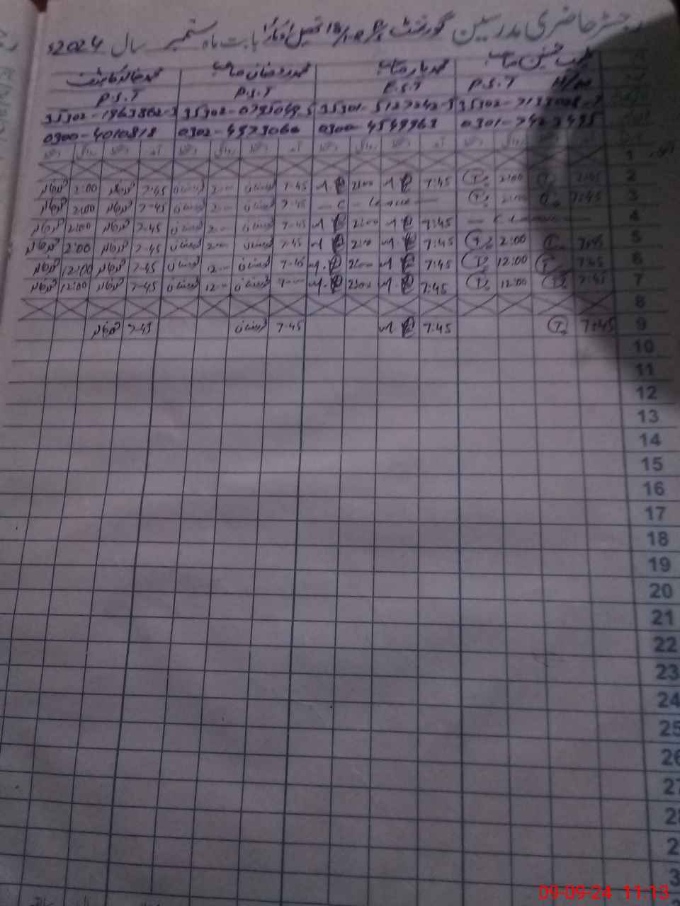 | CNIC | Full Name | Designation | R/C | Absence during last cal. month |