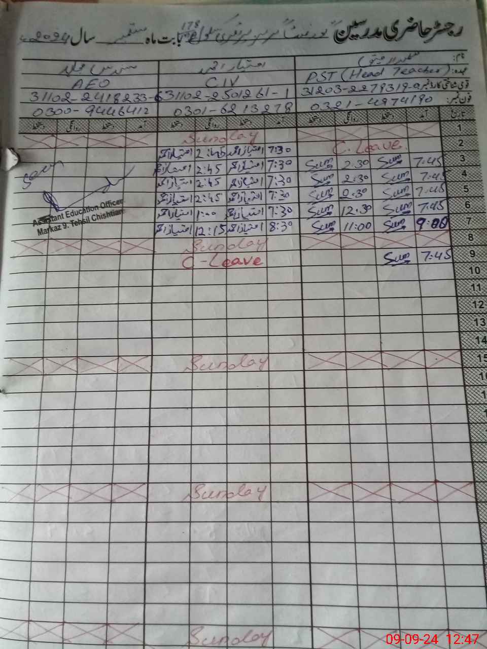 | Name: SU**** RA**** Designation: (School Headmaster's/Headmistress's) PST Phone/Cell Number: 03**** |