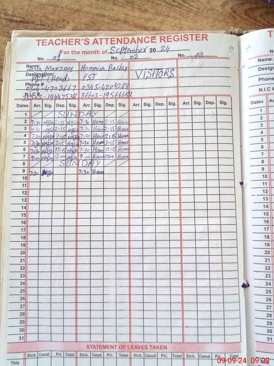 | CNIC | Full Name | Designation | R/C | Absence During Last Calender Month |