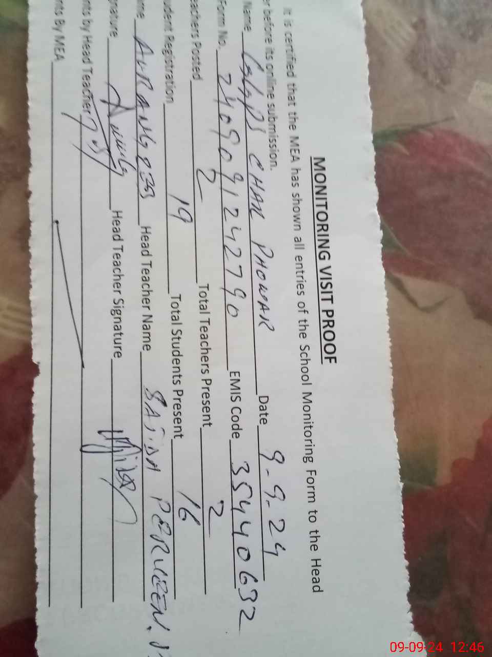 | EMIS Code: 35440632 | Name of School: GGPS CHAK PHOWAR | |||