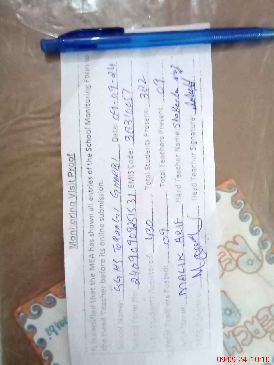 | EMIS Code: 38310057 | Name of School: GGHS TORANGI GHARBI | |||