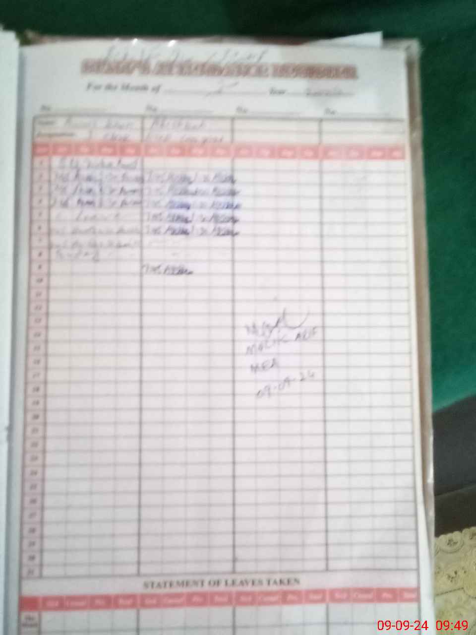| 38**** | Aw**** Kh**** | JUNIOR CLERK | 1 | 1 | 0 | 0 | 0 | 0 | 0 | 0 | 1 | Absent (Un-Authorized) | |