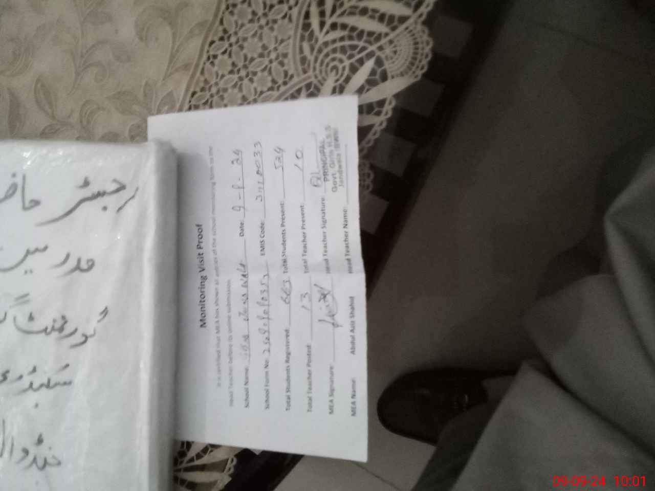 | Certified that this School was Inspected by the Undersigned MEA/DMO Today and the Information Stated Above is as Per Record. | |||||