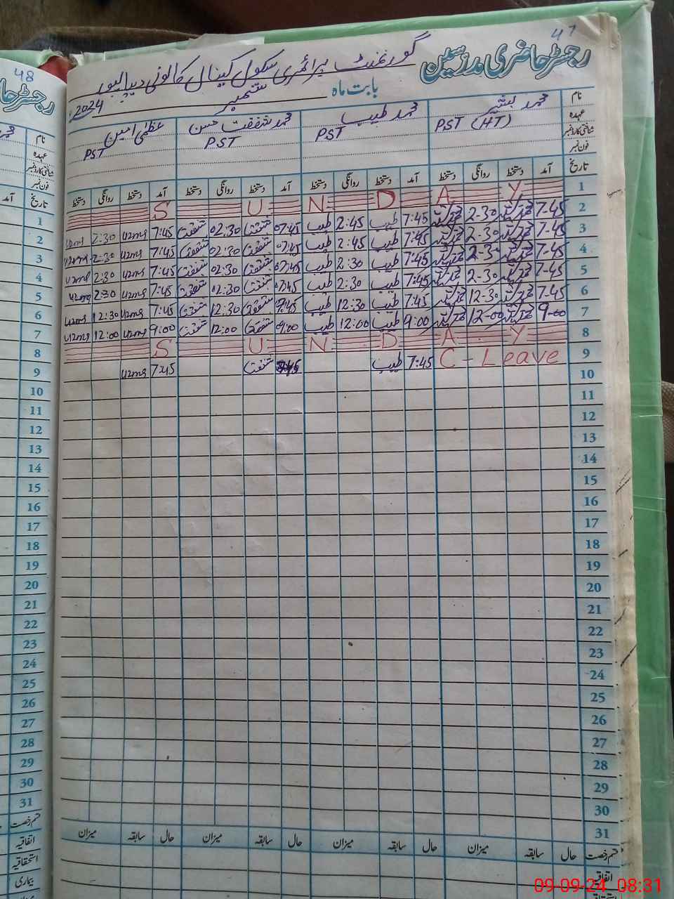 | Leave | Duty | Absent | Maternity | Medical | Ex- Pak |