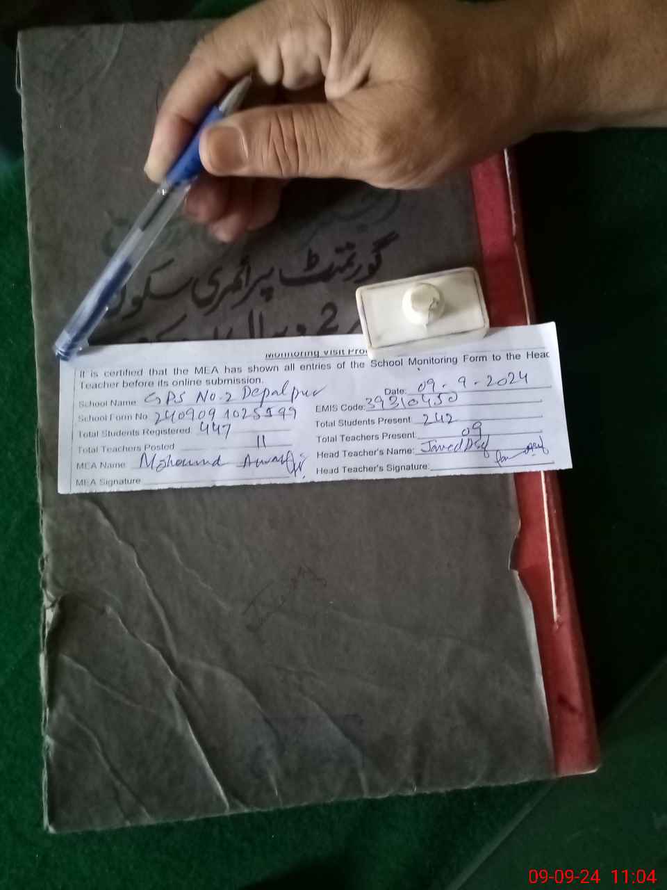 | Attendance Register | Head Teacher | MEA with School | Visit Proof |