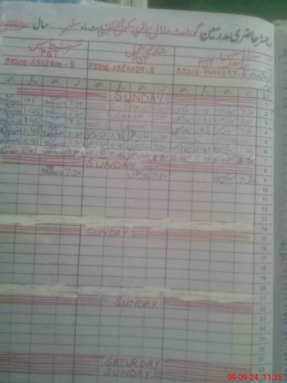 | CNIC | Full Name | Designation | R/C | Absence During Last Calender Month |