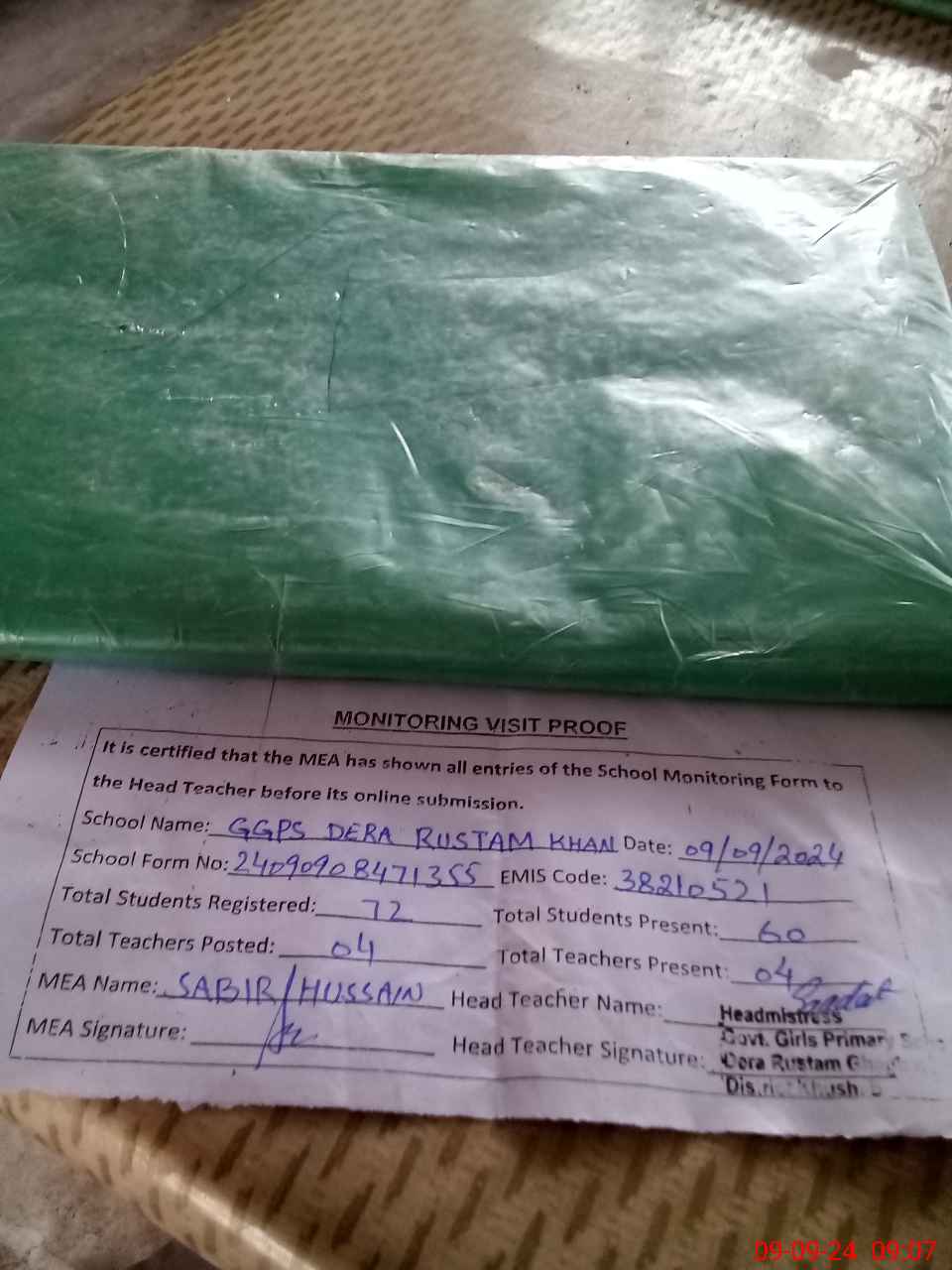 | EMIS Code: 38210521 | Name of School: GGPS DERA RUSTAM KHAN | |||