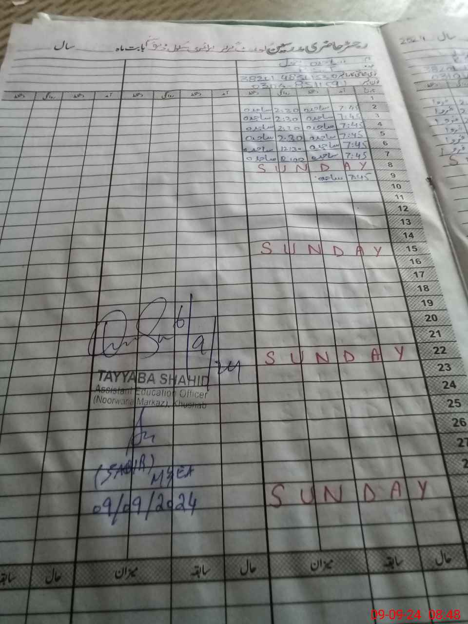 | District: KHUSHAB | Tehsil: KHUSHAB | Markaz: NOOR WANA (FEMALE) | Level: Primary | |