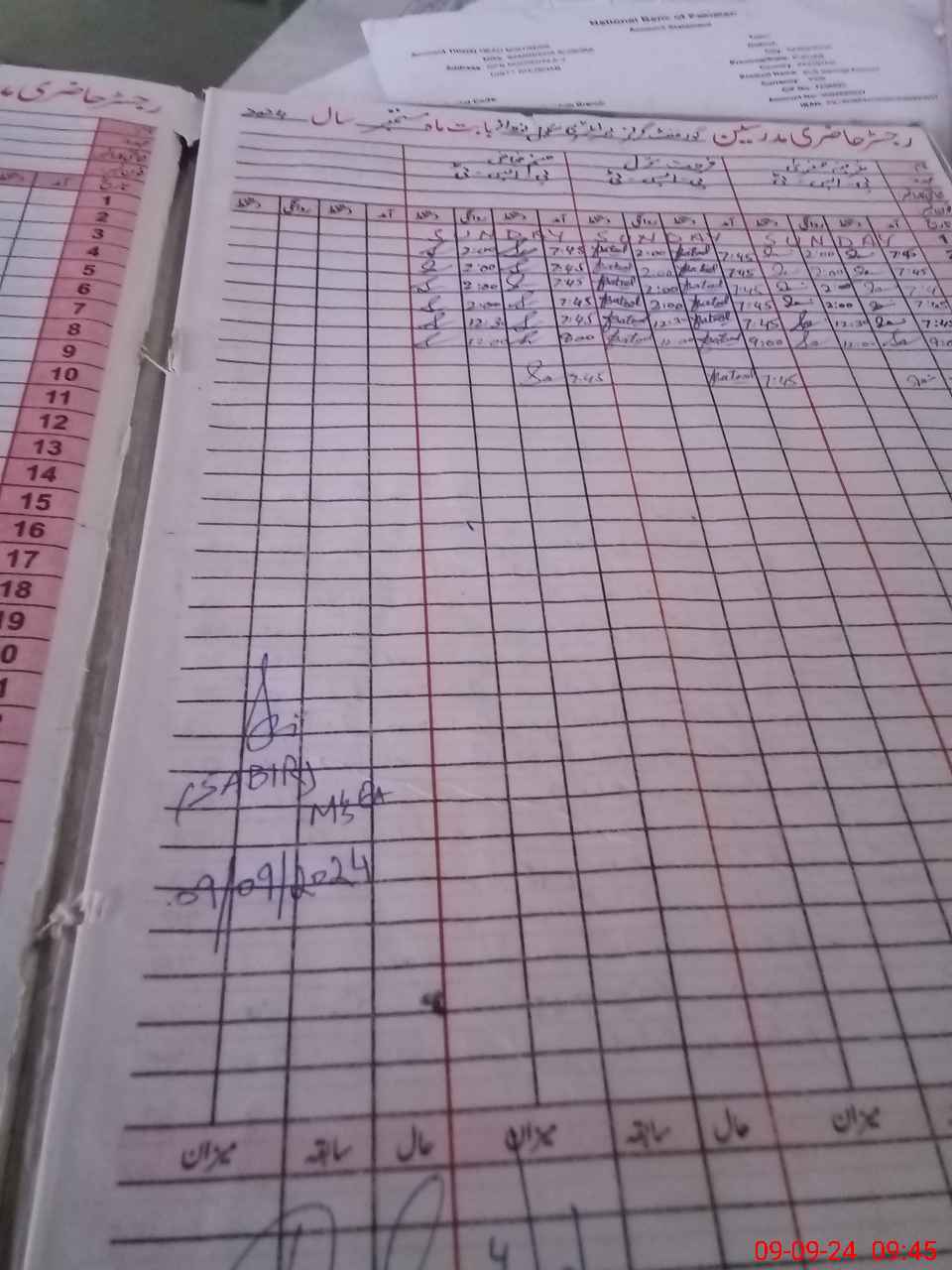 | CNIC | Full Name | Designation | R/C | Absence During Last Calender Month |