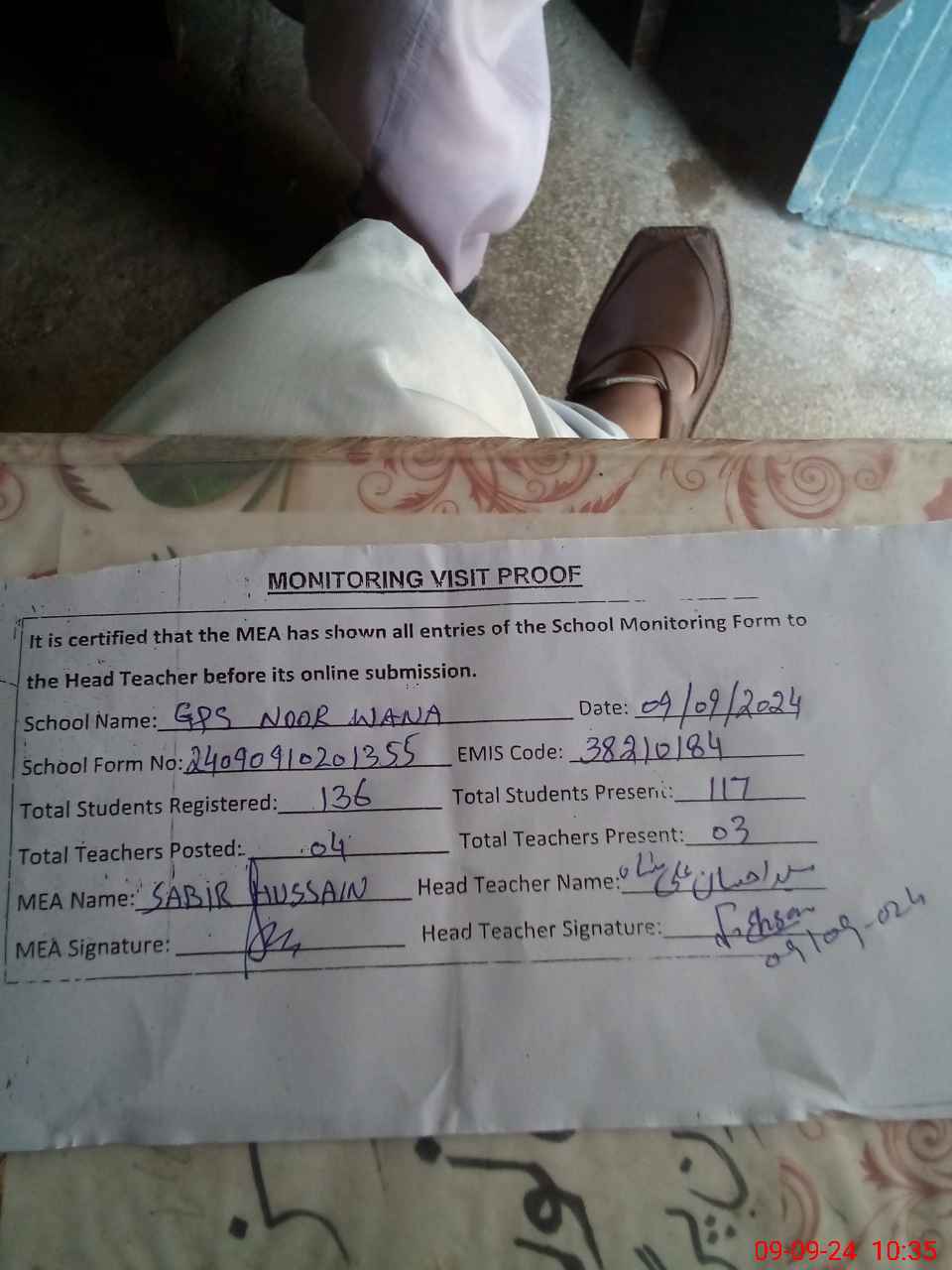| EMIS Code: 38210184 | Name of School: GPS NOOR WANA | |||