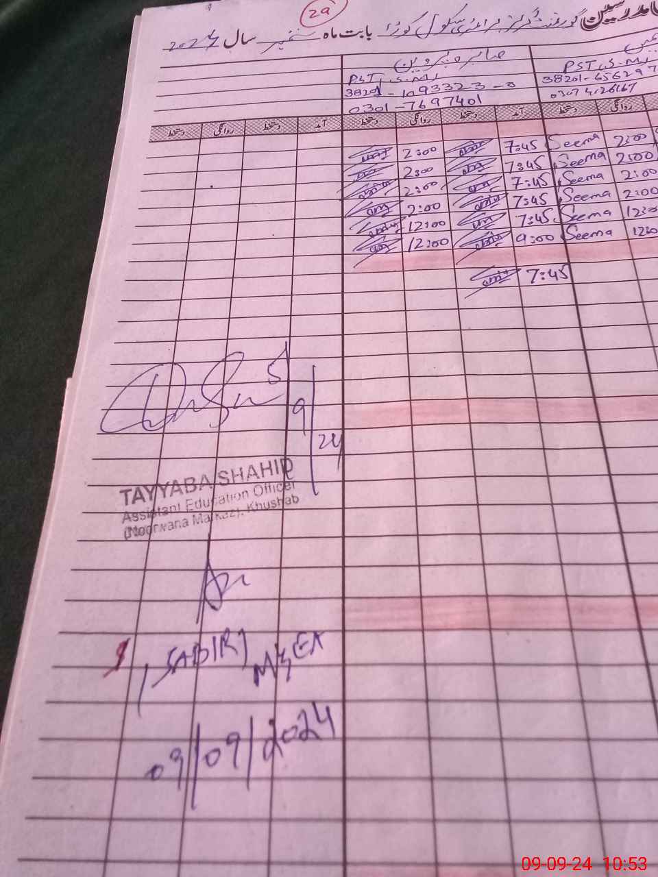 | Name: Za**** Pa**** Bh**** Designation: (School Headmaster's/Headmistress's) Est (V) Phone/Cell Number: 03**** |