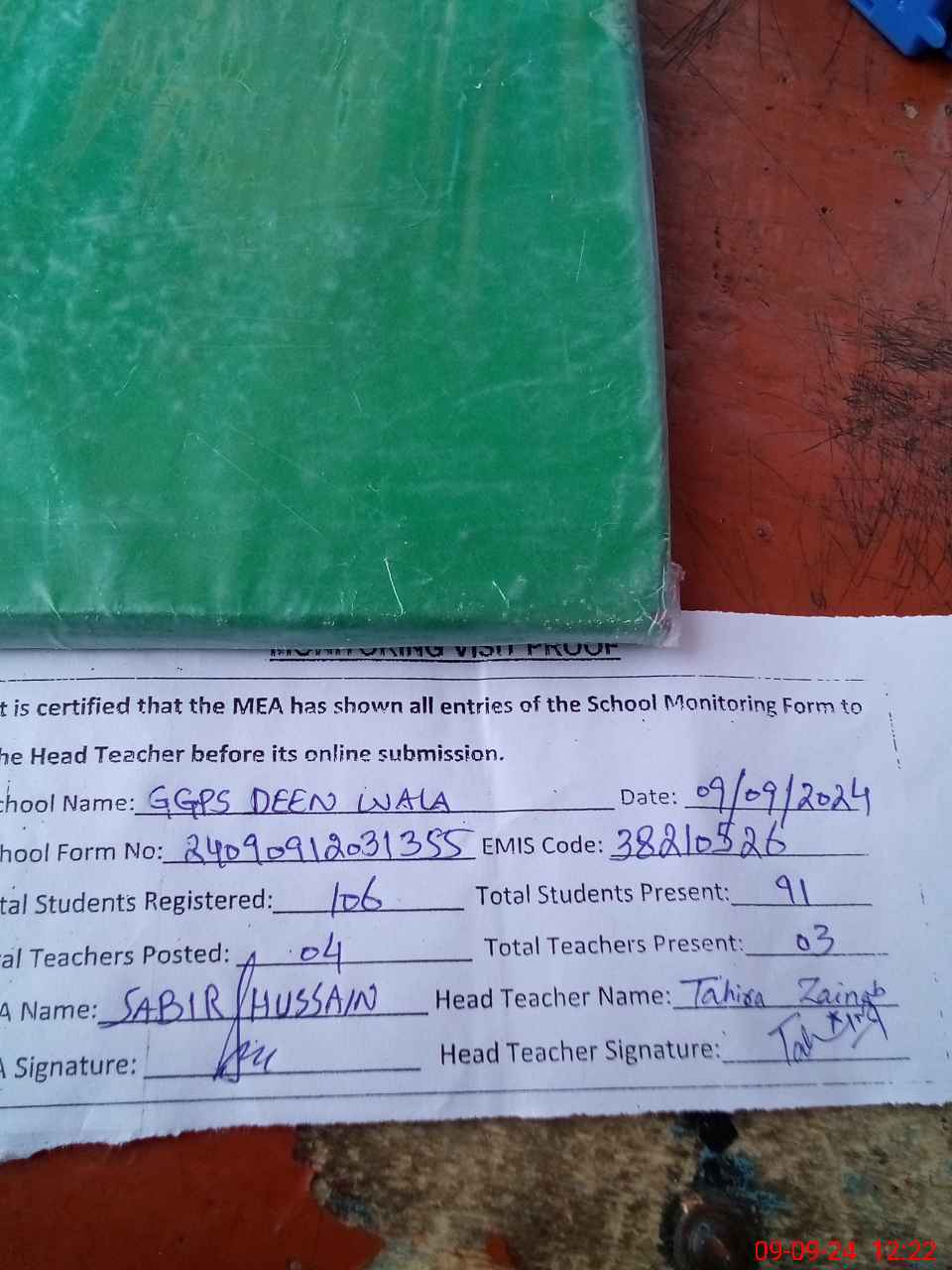 | Attendance Register | Head Teacher | MEA with School | Visit Proof |