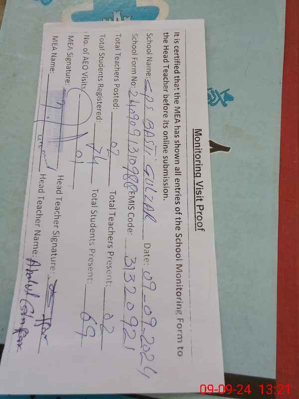 | EMIS Code: 31320921 | Name of School: GPS BASTI GULZAR | |||