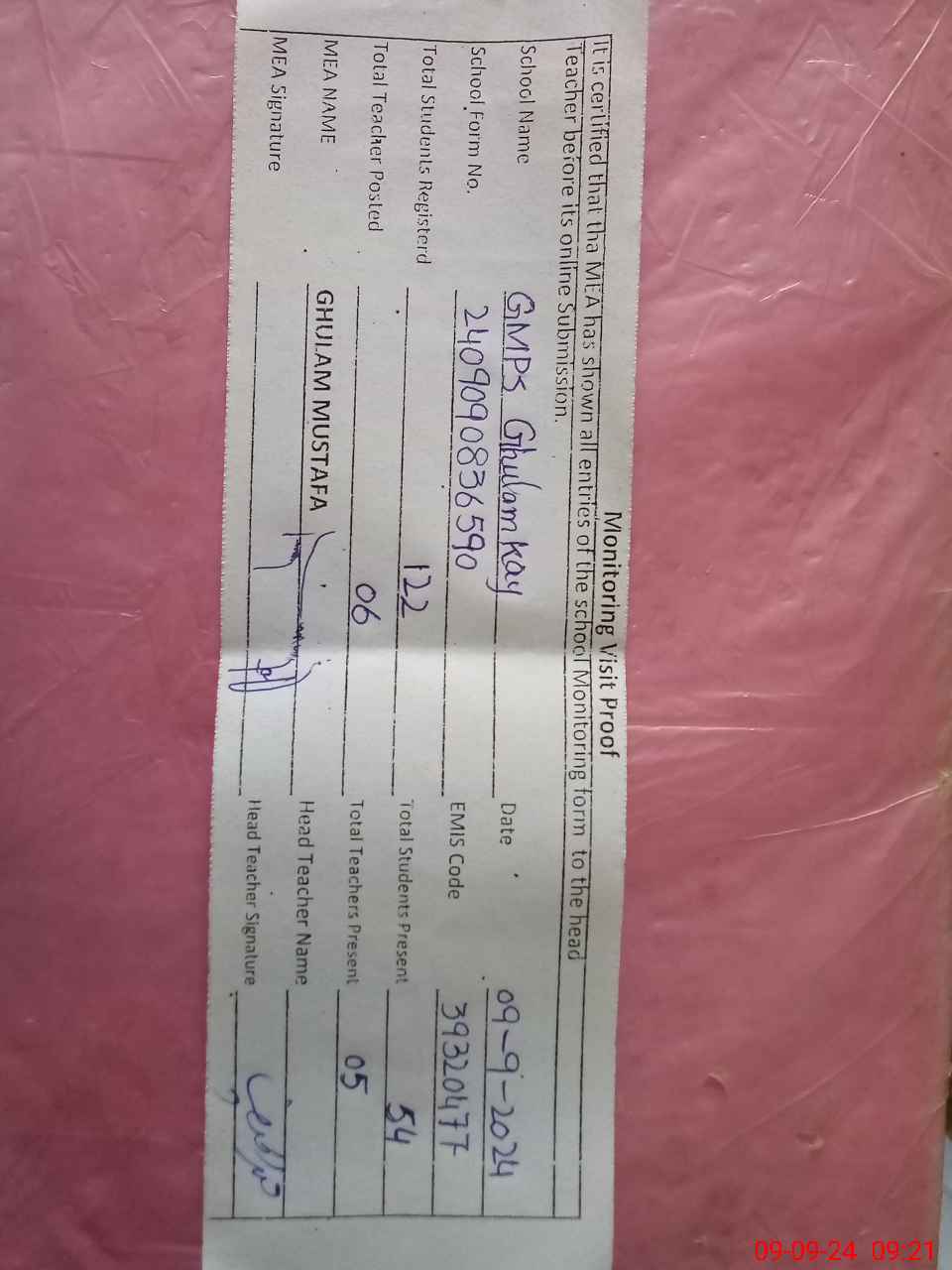 | EMIS Code: 39320477 | Name of School: GMPS THATHA GHULAM KAY | |||