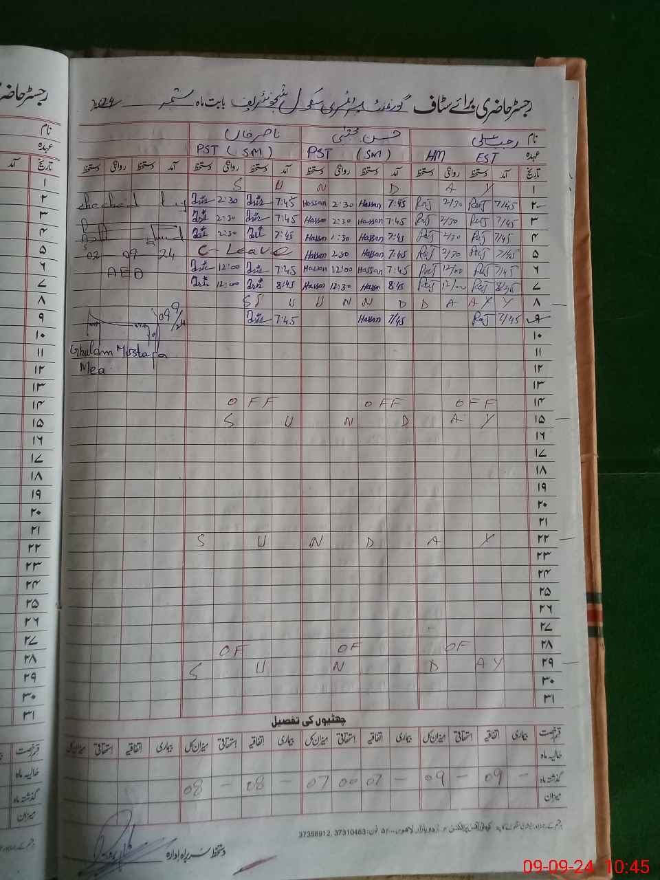 | CNIC | Full Name | Designation | R/C | Absence During Last Calender Month |