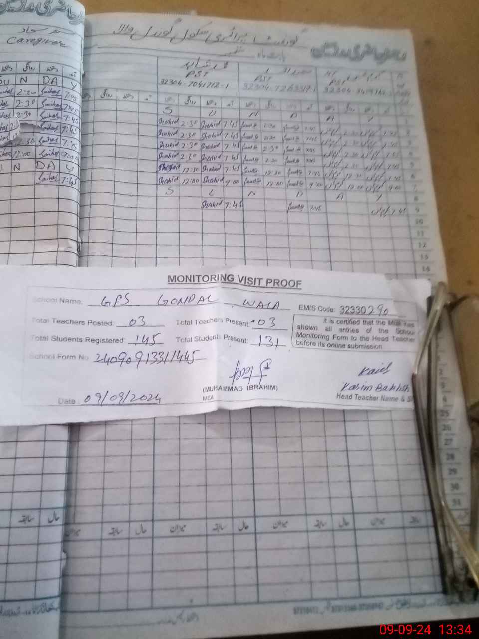 | EMIS Code: 32330290 | Name of School: GPS GONDAL WALA | |||