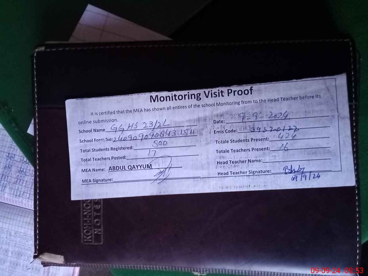 | EMIS Code: 39320122 | Name of School: GGHS CHAK NO.23/2-L | |||