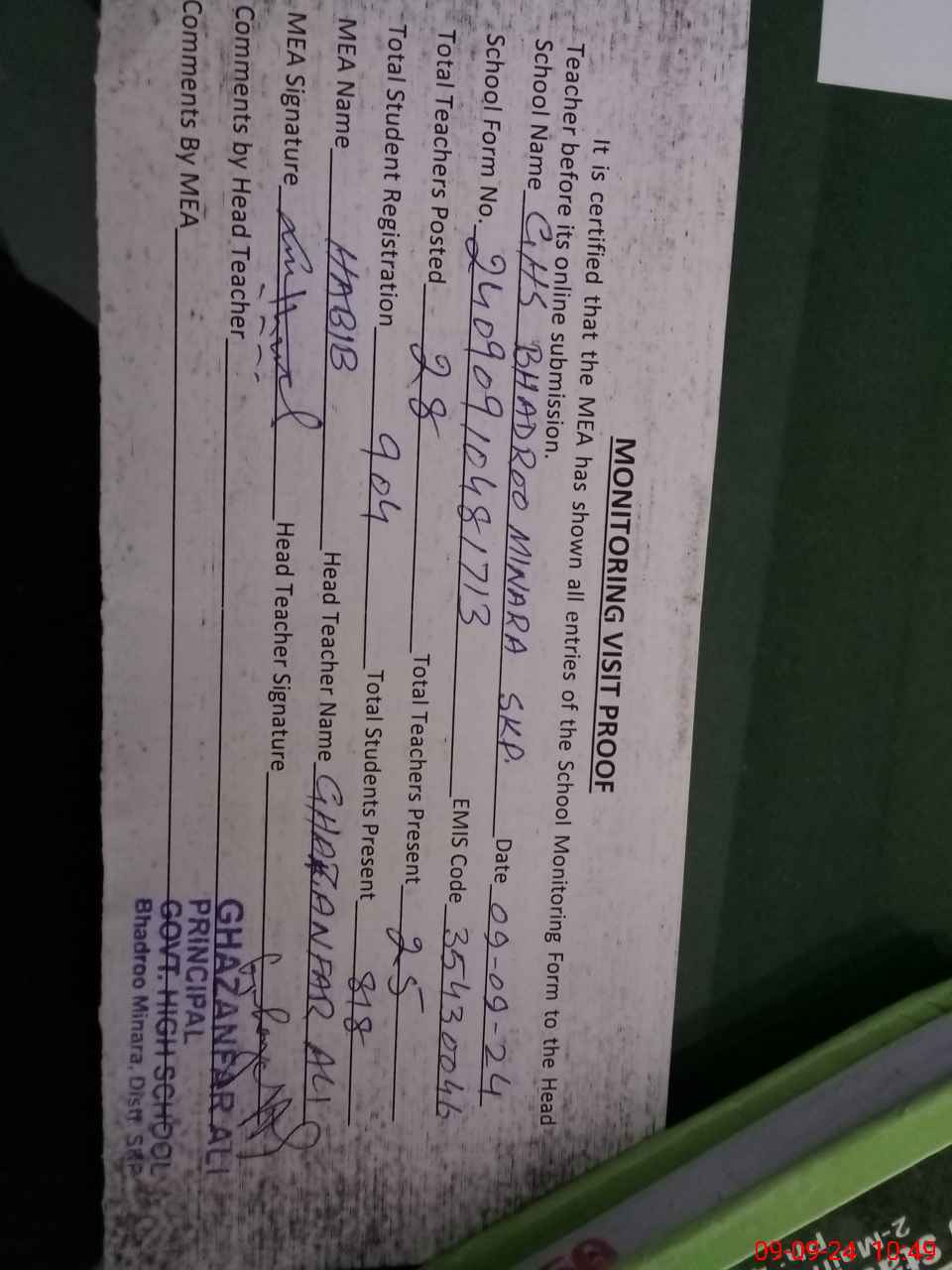 | EMIS Code: 35430046 | Name of School: GHS BHADROO MINARA (SKP) | |||