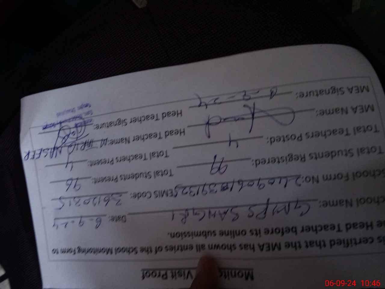 | Attendance Register | Head Teacher | MEA with School | Visit Proof |