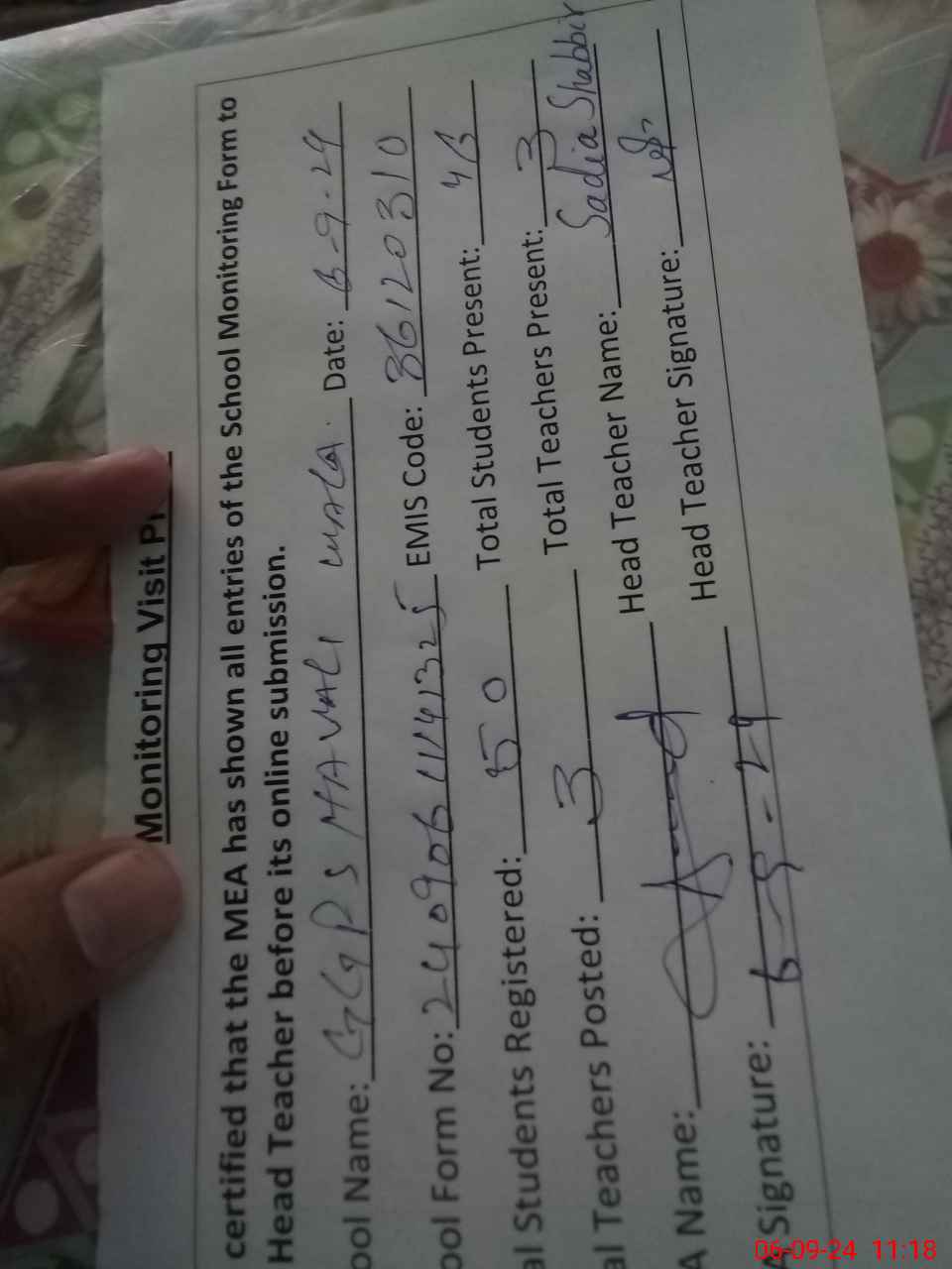 | Name: SA**** SH**** Designation: (School Headmaster's/Headmistress's) ESE SCI_MATH Phone/Cell Number: 03**** |
