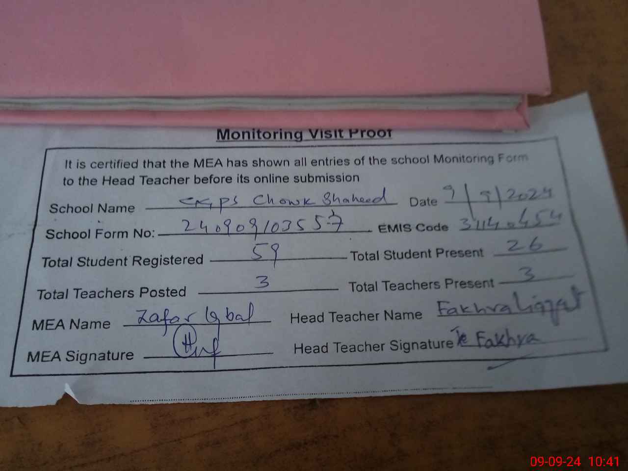 | EMIS Code: 31140454 | Name of School: GGPS CHOWK SHAHEED | |||
