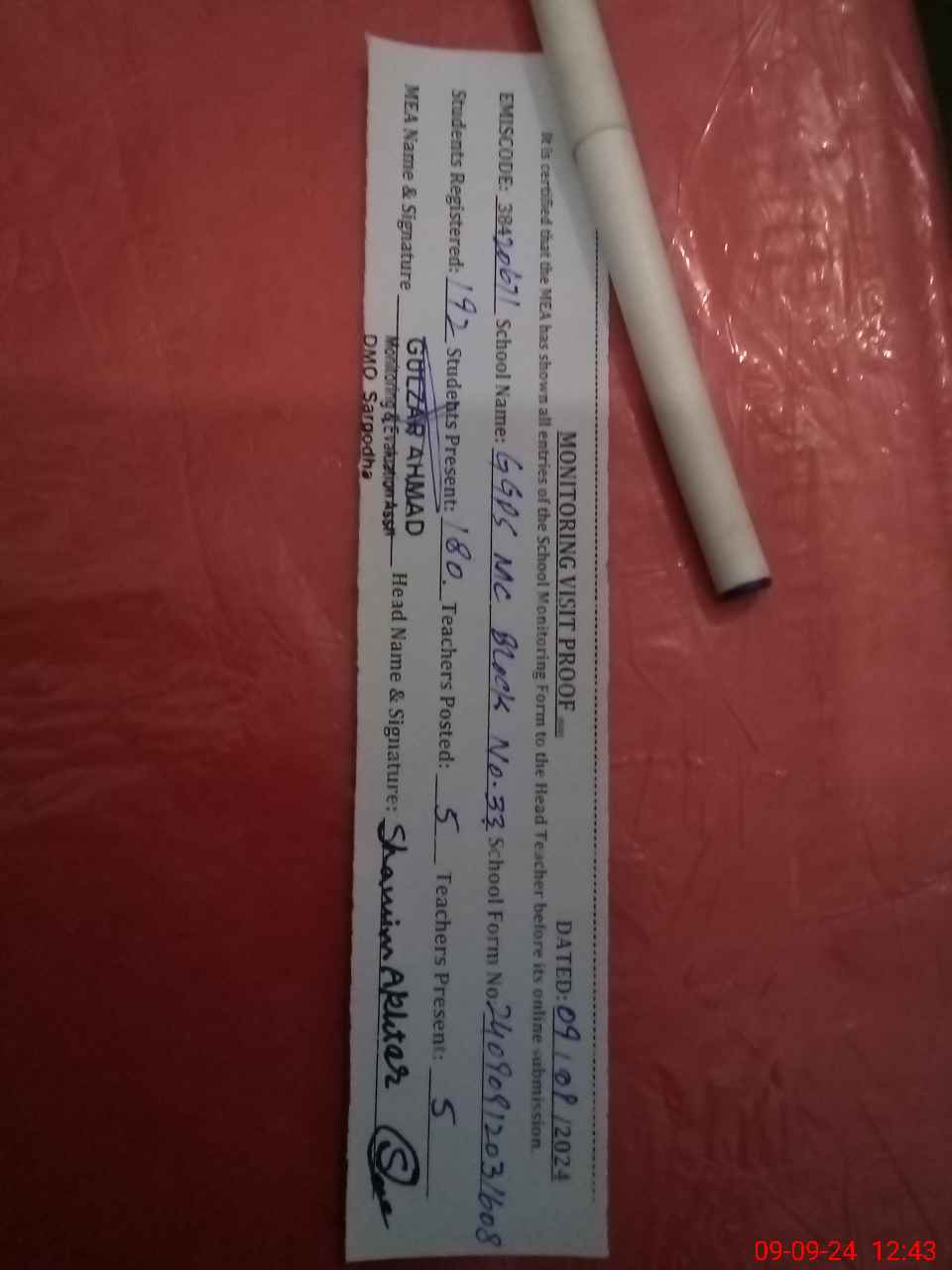 | EMIS Code: 38420671 | Name of School: GGPS MC BLOCK NO.33 SARGODHA | |||