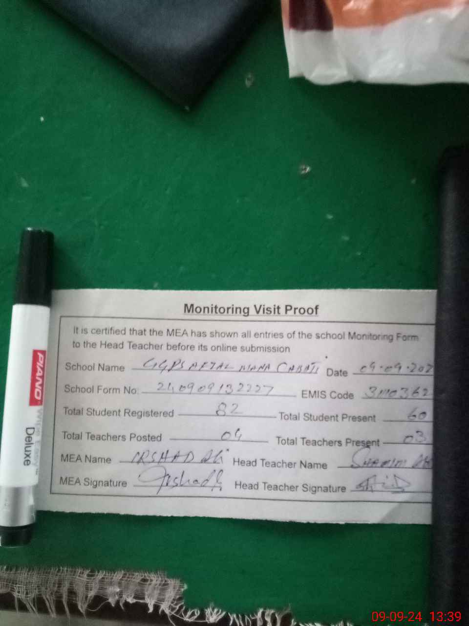 | Attendance Register | Head Teacher | MEA with School | Visit Proof |