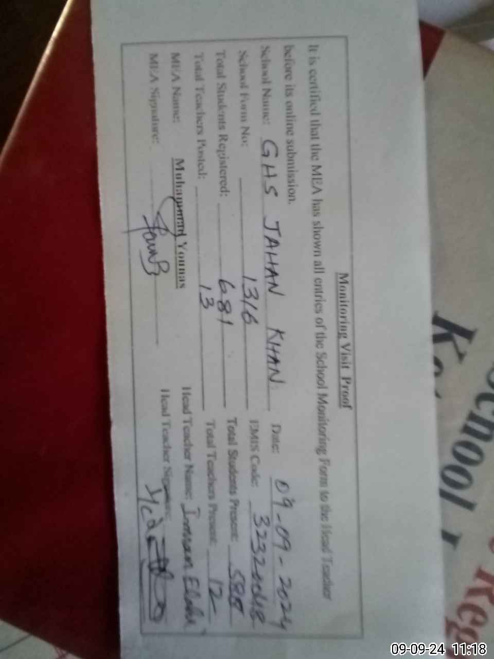 | EMIS Code: 32320048 | Name of School: GHS JAHAN KHAN | |||