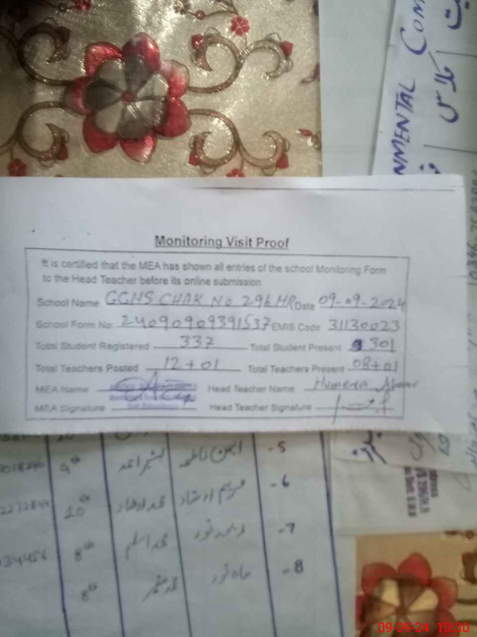 | EMIS Code: 31130023 | Name of School: GGHS CHAK NO 296 HR | |||