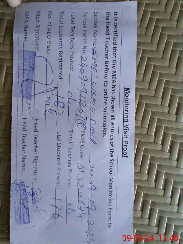 | Certified that this School was Inspected by the Undersigned MEA/DMO Today and the Information Stated Above is as Per Record. | |||||