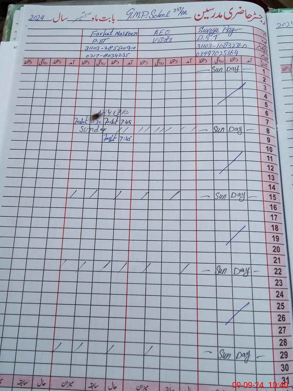 | Name: Su**** Be**** Designation: (School Headmaster's/Headmistress's) PST Phone/Cell Number: 03**** |