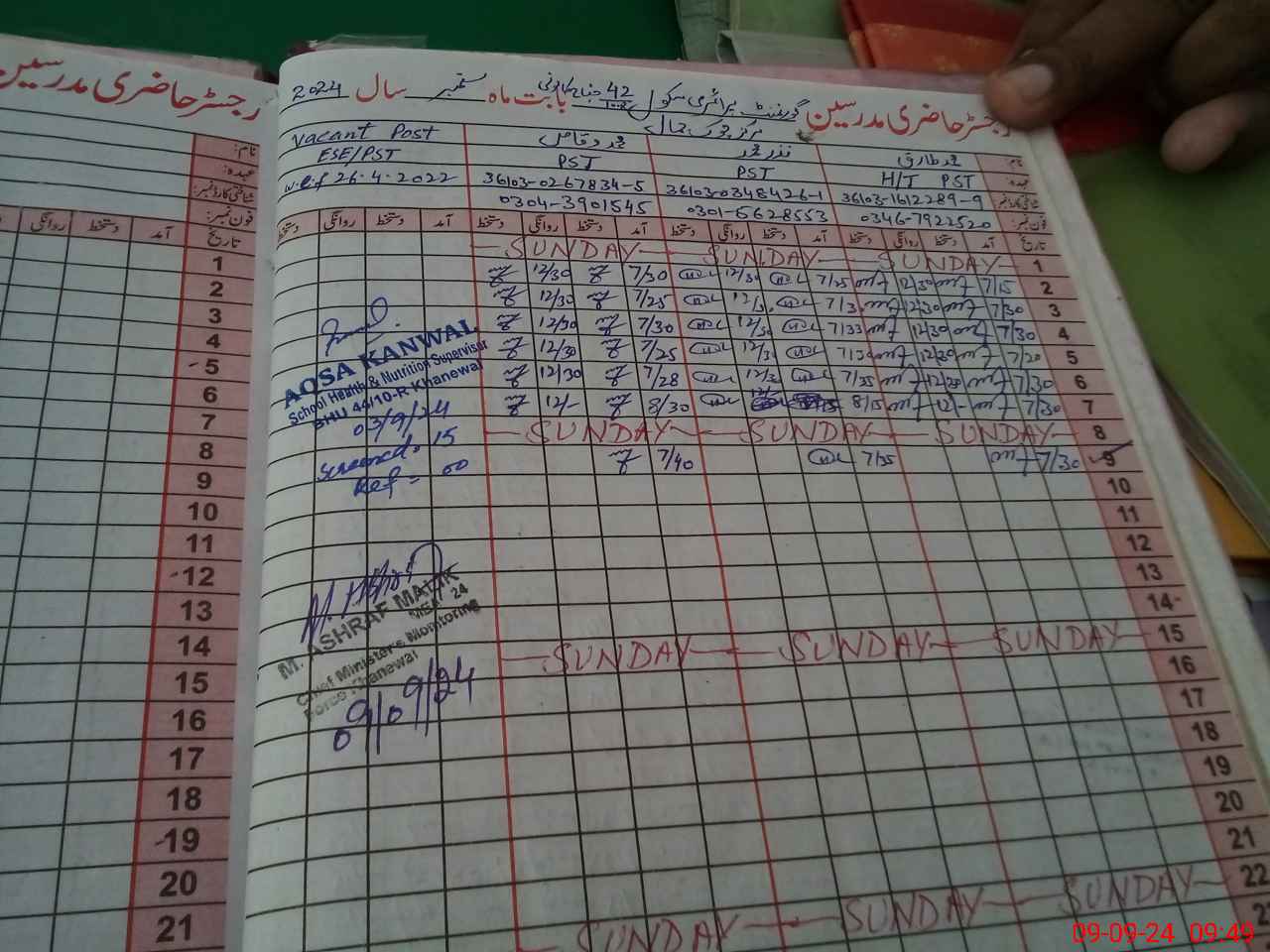 | Name: Sy**** Im**** Ha**** Sh**** Designation: (School Headmaster's/Headmistress's) PST Phone/Cell Number: 03**** |