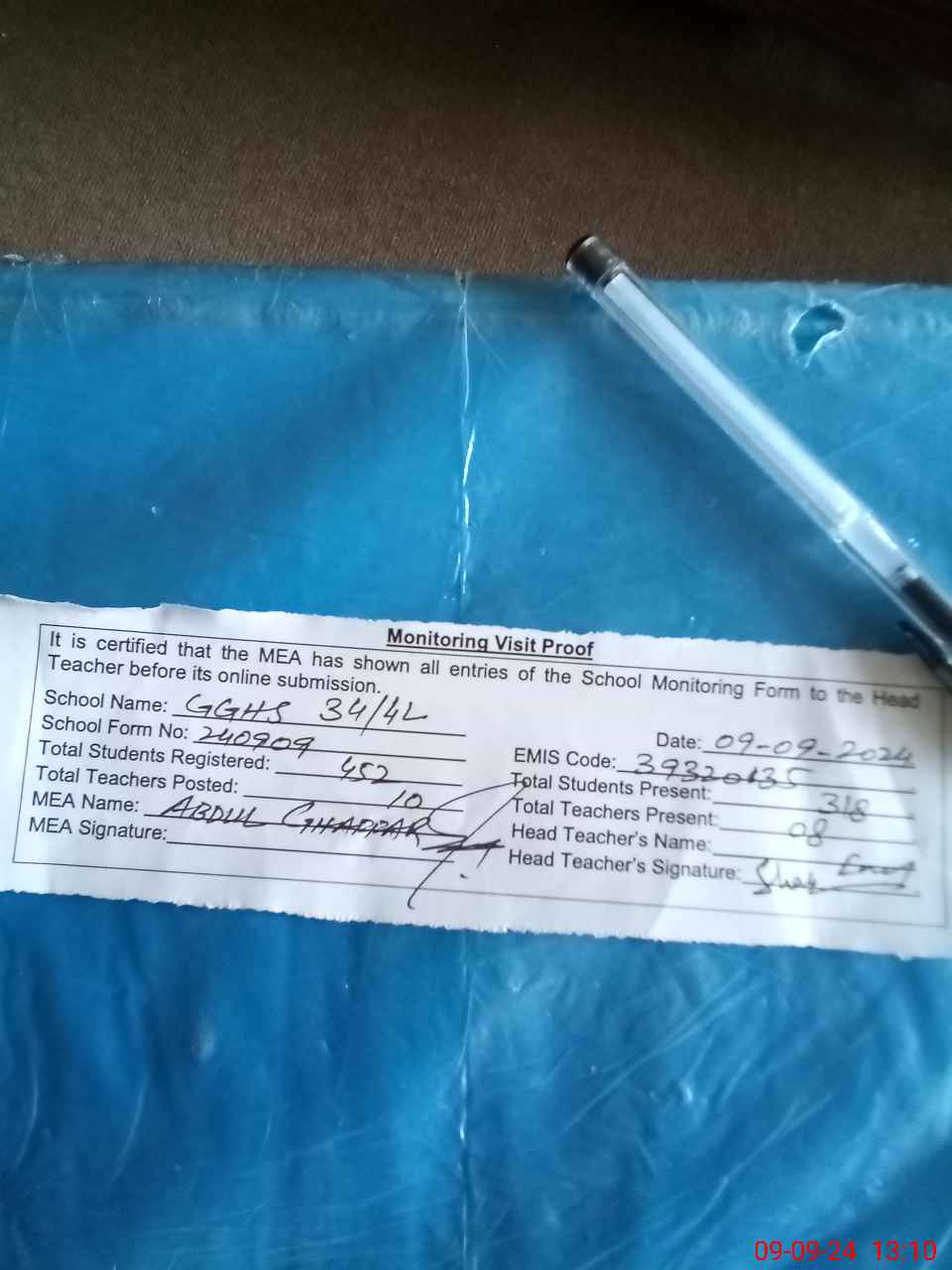 | EMIS Code: 39320135 | Name of School: GGHS CHAK NO.34/4-L | |||