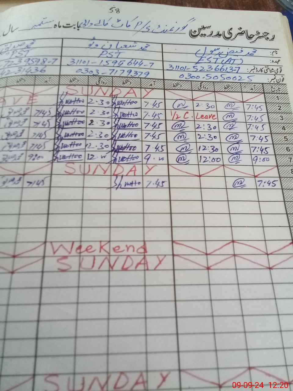 | CNIC | Full Name | Designation | R/C | Absence During Last Calender Month |
