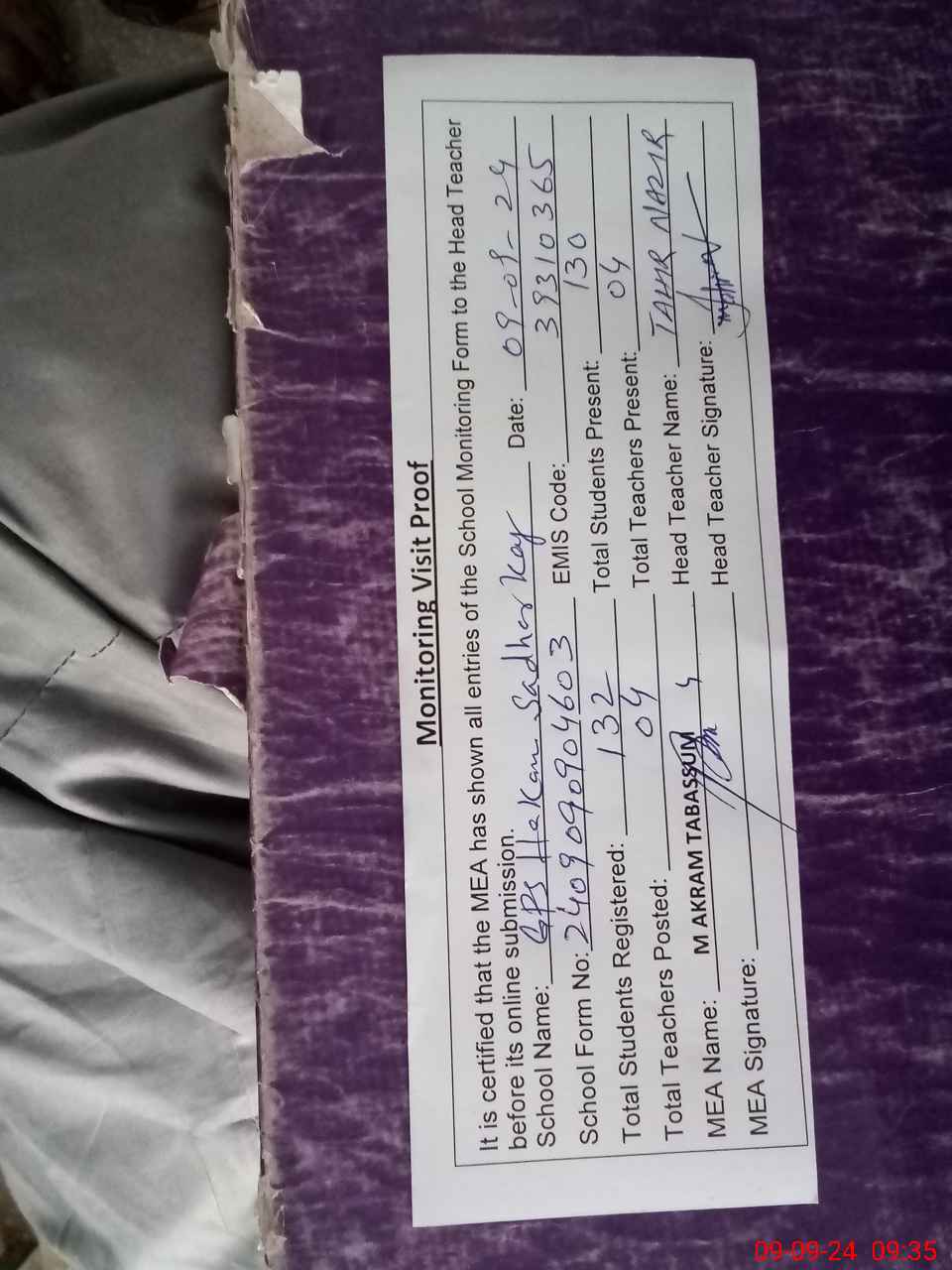 | EMIS Code: 39310365 | Name of School: GPS HAKAM SADHAR KEY | |||