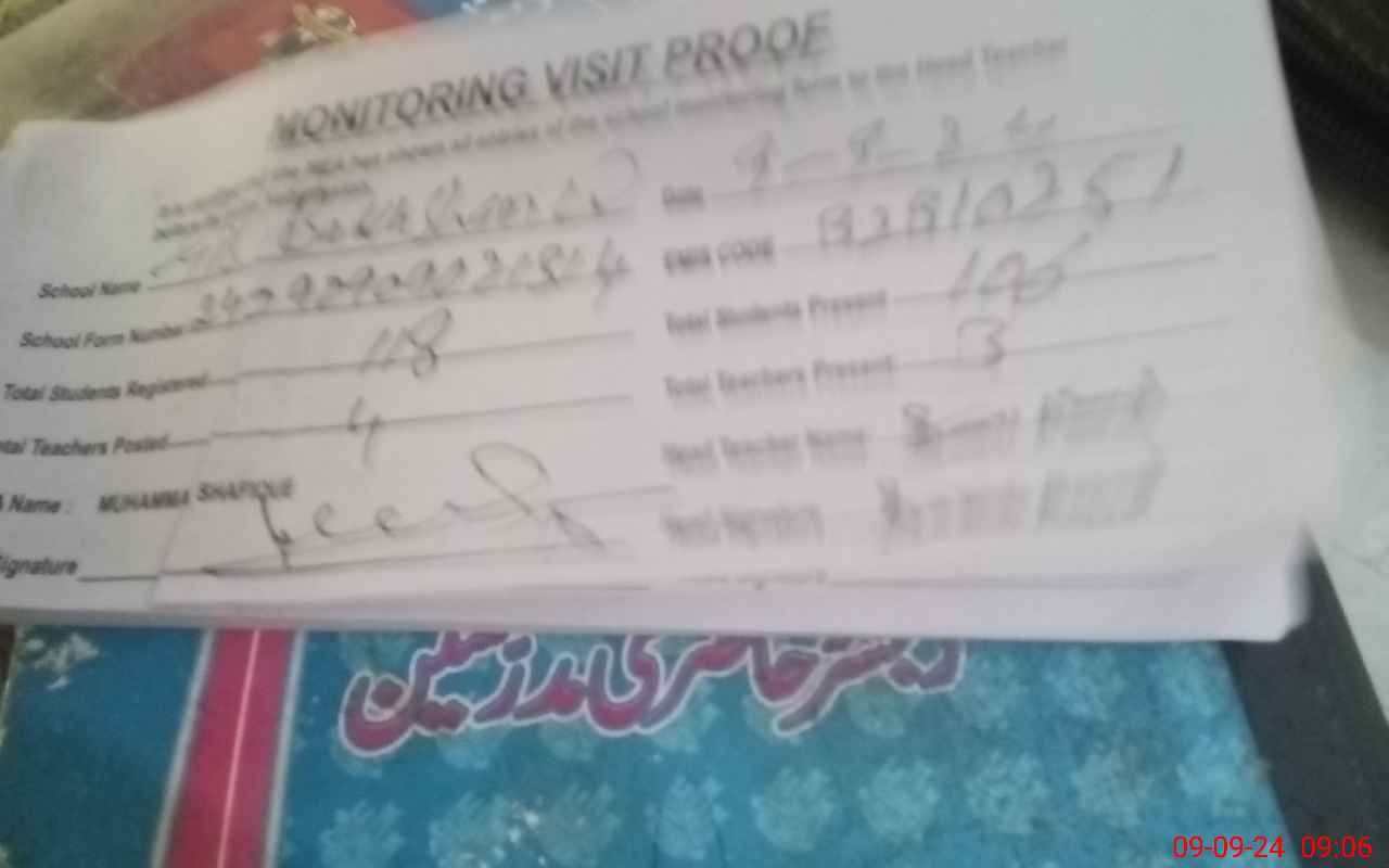 | Name: RI**** HU**** Designation: (School Headmaster's/Headmistress's) PST Phone/Cell Number: 03**** |