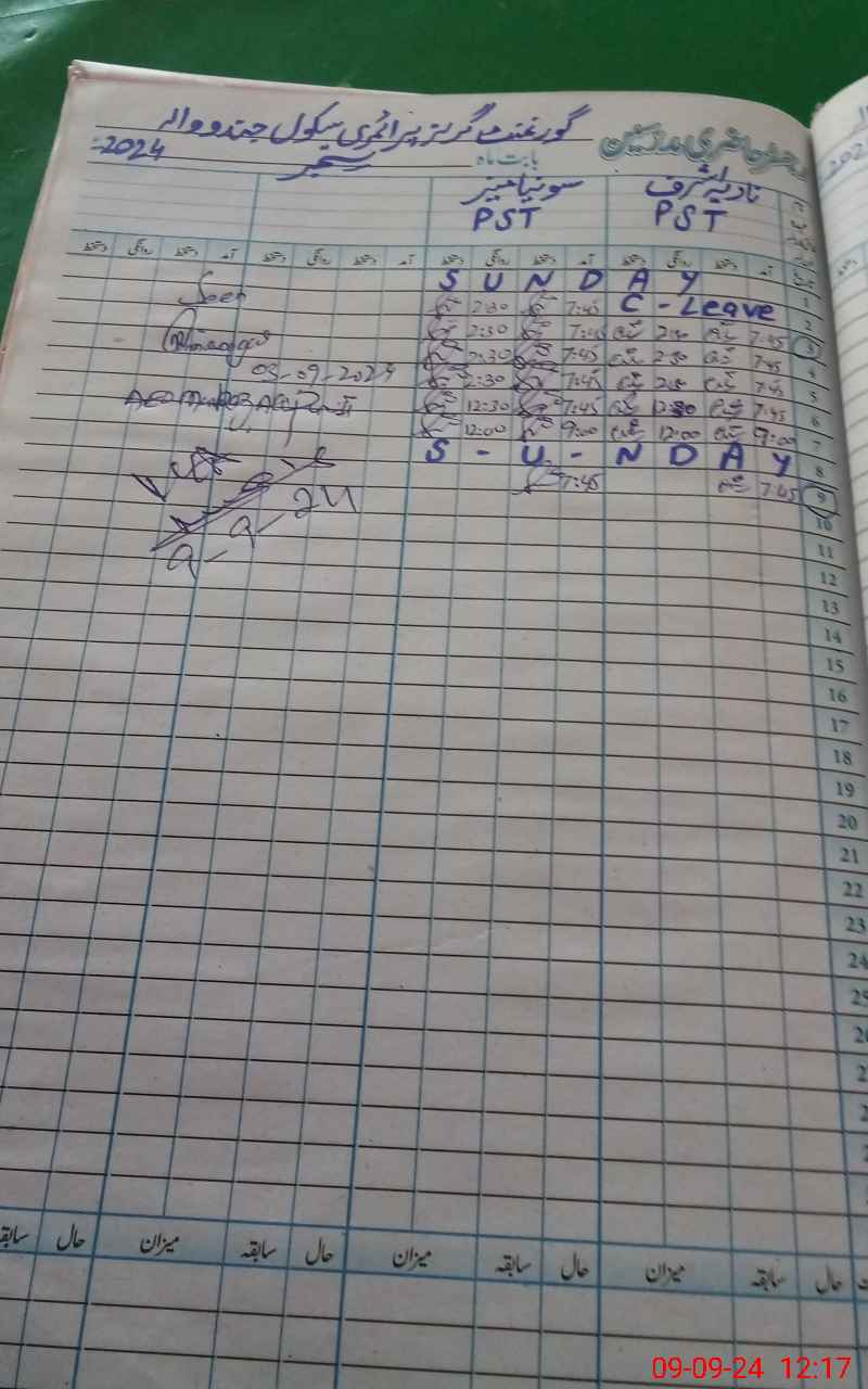 | CNIC | Full Name | Designation | R/C | Absence During Last Calender Month |