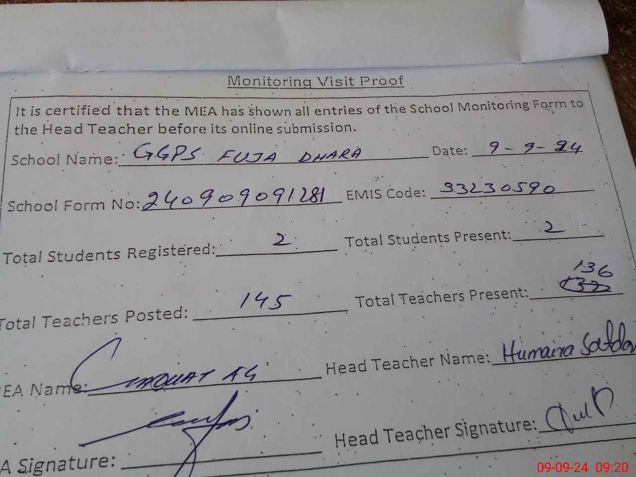 | EMIS Code: 33230590 | Name of School: GGPS FUJA DHARA | |||