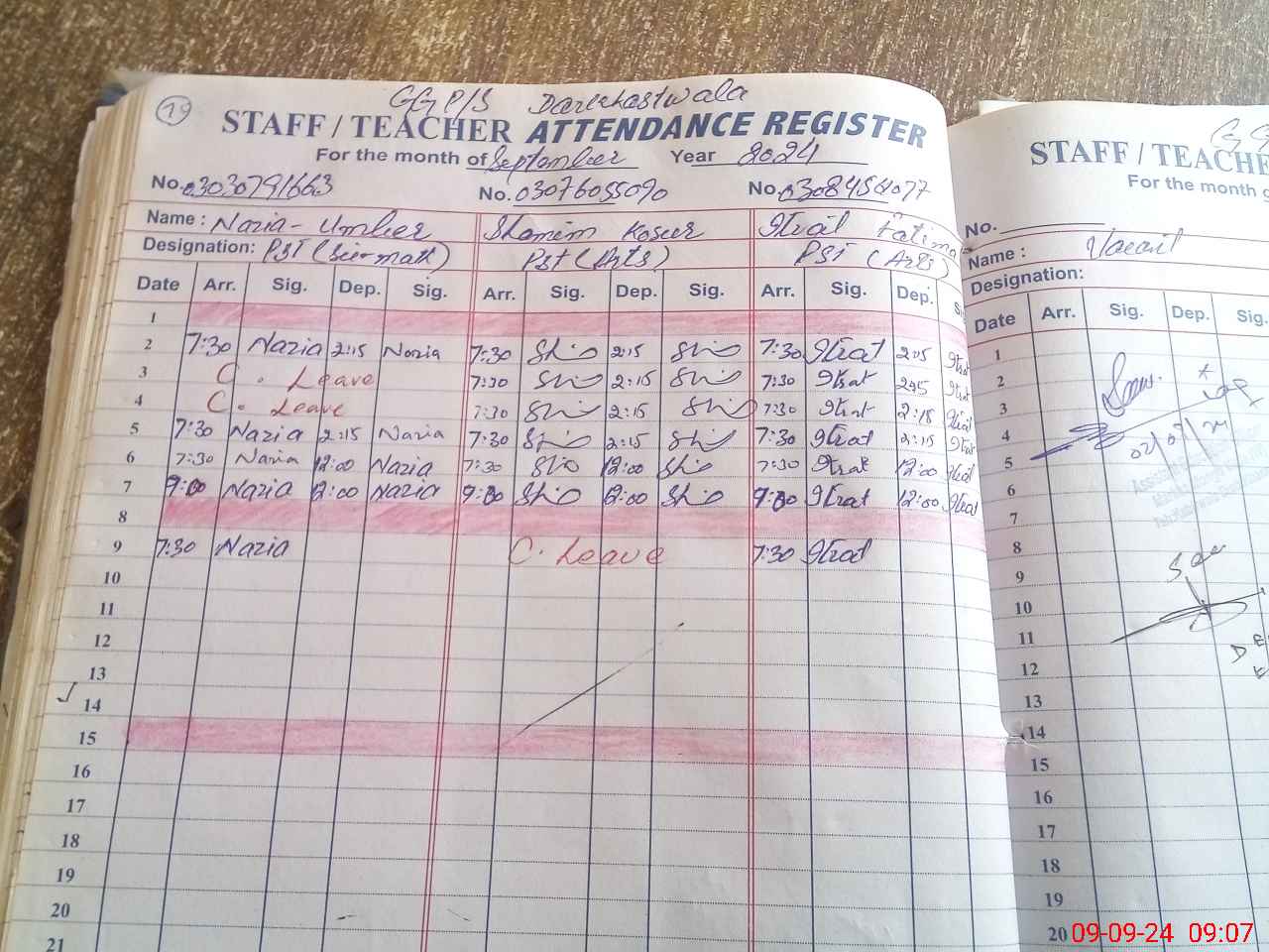 | CNIC | Full Name | Designation | R/C | Absence During Last Calender Month |