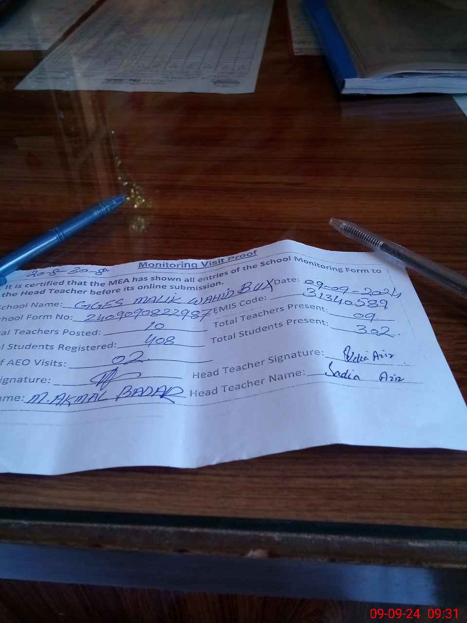 | EMIS Code: 31340589 | Name of School: GGES MALIK WAHID BUX | |||
