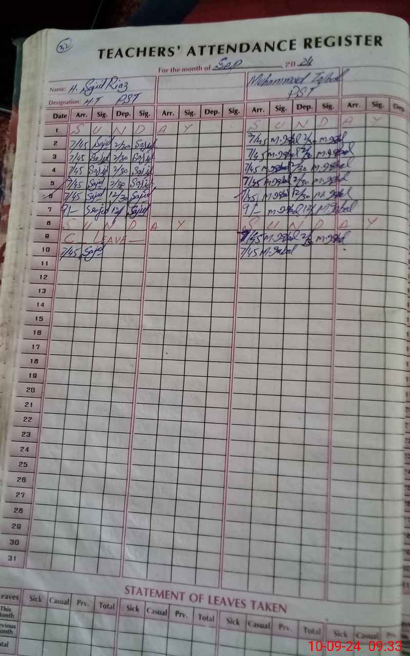 | Name: SA**** RA**** Designation: (School Headmaster's/Headmistress's) PST Phone/Cell Number: 03**** |