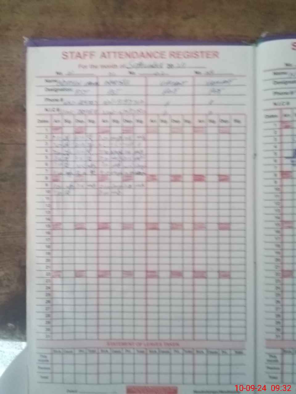 | CNIC | Full Name | Designation | R/C | Absence During Last Calender Month |