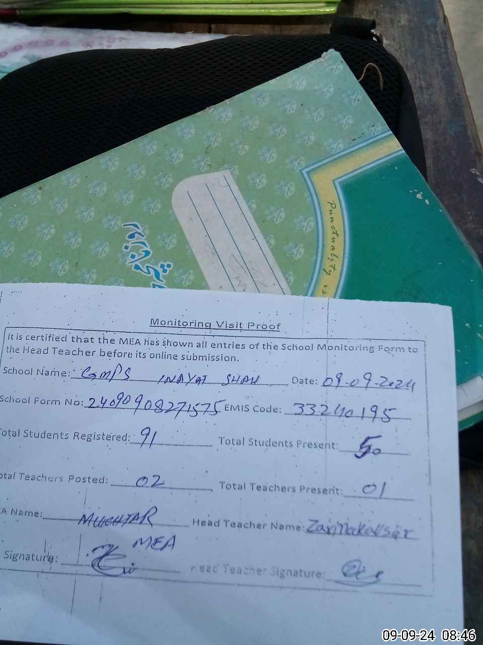 | EMIS Code: 33240195 | Name of School: GMPS ANAYAT SHAH | |||