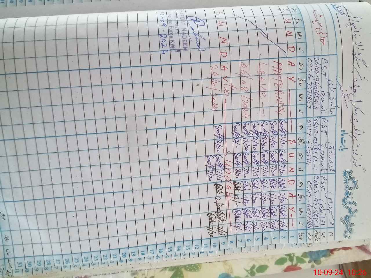 | 36**** | Ai**** Ra**** | PST | Regular | 0 | 0 | 0 | 0 | 0 | 0 | 0 | 0 | 0 | Maternity |
