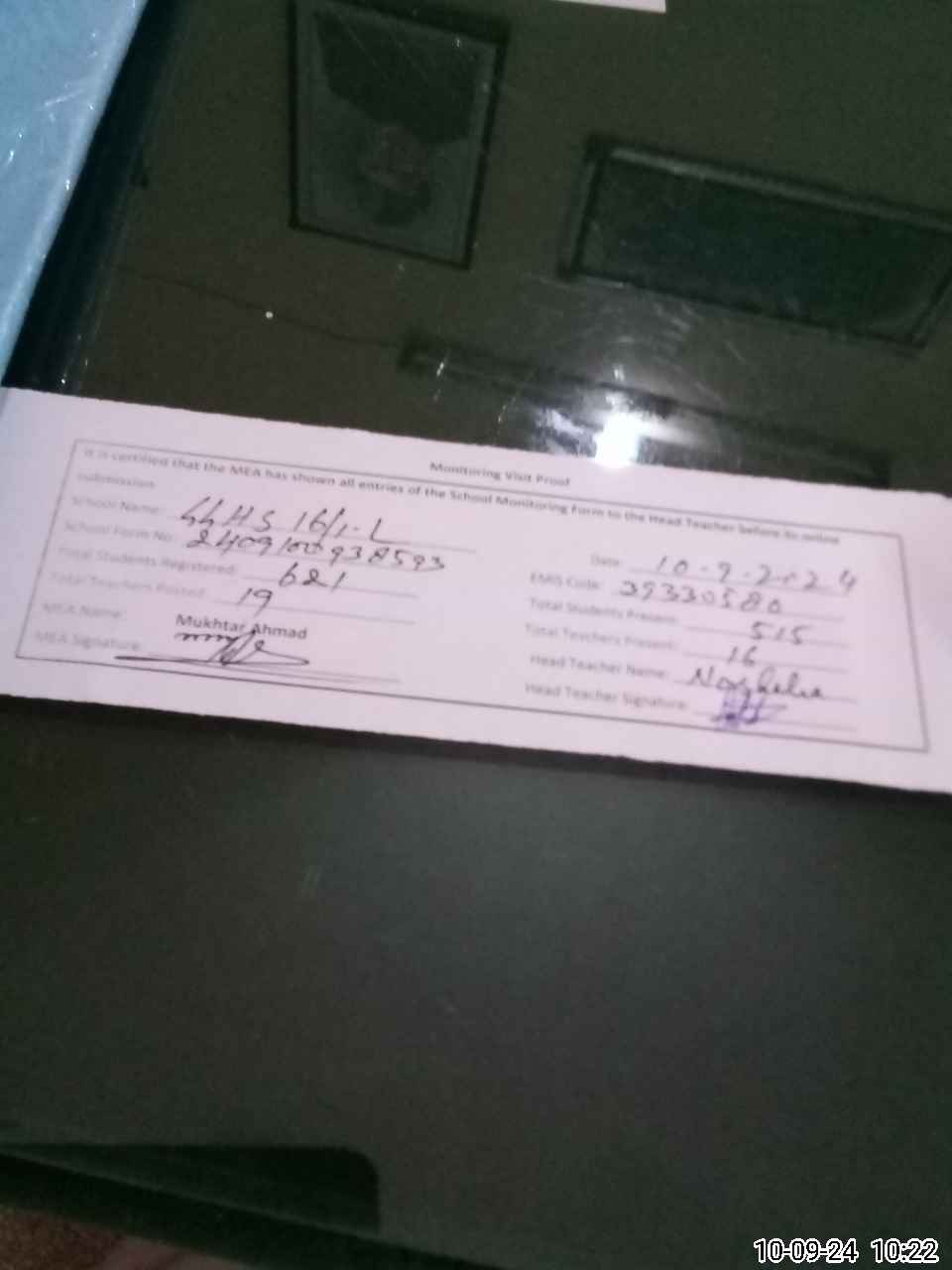| Name: KH**** Ba**** Designation: (School Headmaster's/Headmistress's) HEAD MISTESS Phone/Cell Number: 03**** |