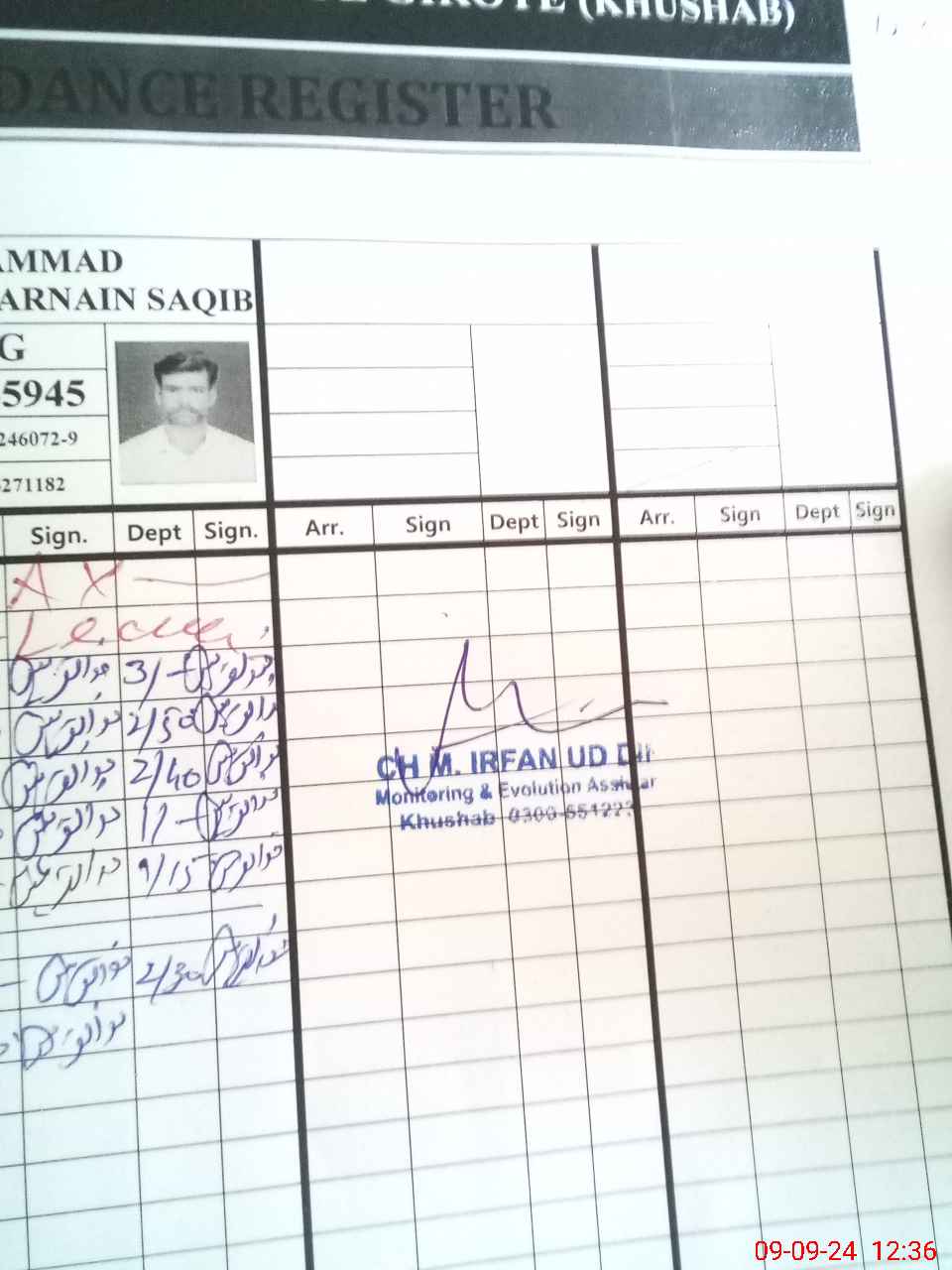 | CNIC | Full Name | Designation | R/C | Absence during last cal. month |